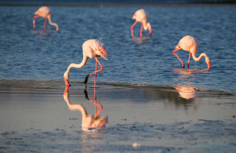 Chi ama la natura e gli animali non può perdersi una visita allo stagno di Molentargius, a meno di 3 chilometri da Monserrato (Cagliari, Campidano, Sud Sardegna), una delle più importanti aree umide d'Europa, dove è possibile ammirare una ricchezza floreale e faunistica che ha pochi eguali al mondo. Ed è qui che, tra le tantissime varietà di uccelli, ne incontriamo una molto particolare: il fenicottero rosa. Chiamato anche fenicottero maggiore (Phoenicopterus roseus, Pallas,1811),il suo nome scientifico deriva dal latino phoenix (fenice, in quanto purpureo come la fenice) epteron (ala), dunque letteralmente "ali purpuree". Raggiunge la ragguardevole altezza di 1,40 metri, con un’apertura alare di 2,40 metri e un peso che supera facilmente i 5 chili. Questa specie è molto particolare perchè, diffusa soprattutto in Asia e in Africa, è l’unica a nidificare nel sud Europa.